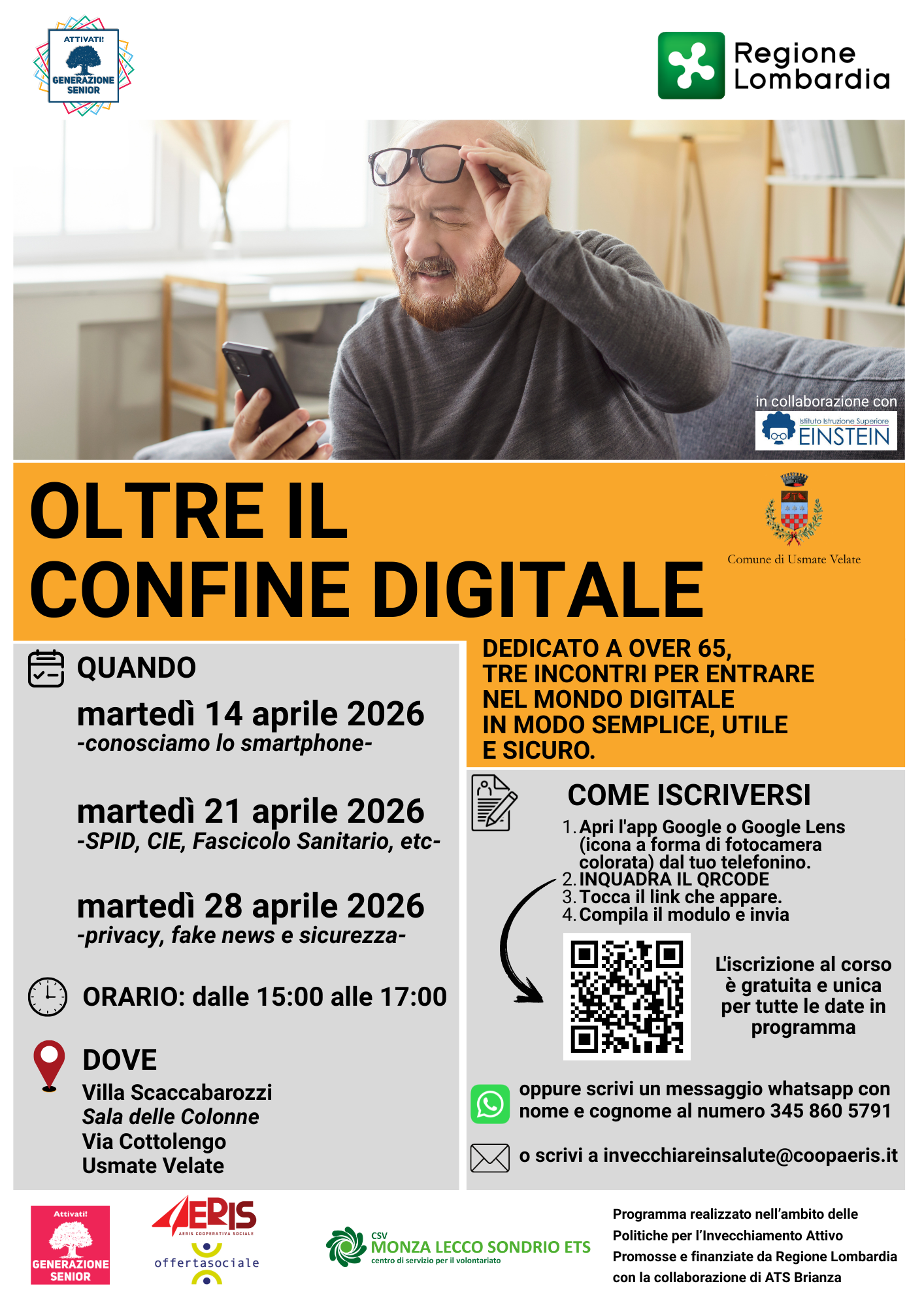 Nell’ambito del progetto relativo all’invecchiamento attivo Generazione Senior, si pubblicano in allegato le locandine delle attività dedicate al digital gap.